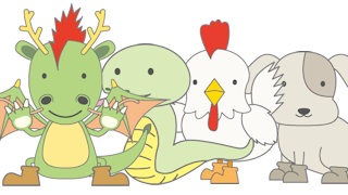 《とり》と《いぬ》がそれぞれ合宿から帰ってきました。《とり》はスキーで《いぬ》はスノボです。