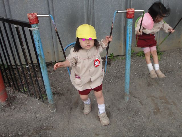 体操教室 習い事 2010.04.19(月) 今日も午前保育です。幼稚園から帰ってきて家の前で遊んでいて、気づくと体操教室の時間が迫っていたので、あわてておにぎりを食べさせて幼稚園の体操教室に行きました。先生にちゃんとお昼ごはんを食べてきたかと聞かれ、《とり》が「おにぎりしか食べてない!」とみんなの前で言ったので《へび》は恥ずかしかったそうです。 今学期初めての授業では、みんなで走ったり、マット運動をしたり、跳び箱の上で前回りをしたりしました。《いぬ》はお友達と遊具で楽しそうに遊んでいました。