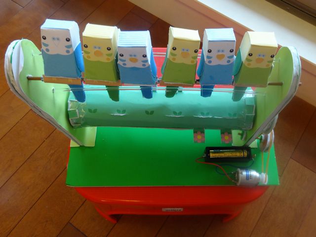 《とり》の自由研究の工作です。モーターの角度の調整に苦労していました。