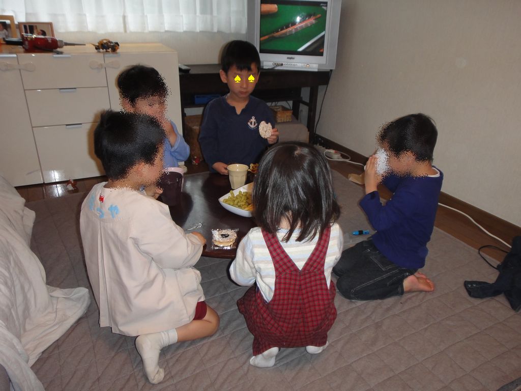 家遊び お友達 2010.04.20(火) ピアノ教室に行ってから近所のお友達のお家に遊びに行きました。ピアノのレッスンは本来30分ですが、ハノン25分、バイエルと副教材20分で45分位レッスンしていただきました。お友達のお家に着くと15時半くらいでしたが、みんなおやつを食べずに待っていてくれました。おやつを食べてからは車などで遊んでいました。雨でしたがお友達を遊べてよかったです。