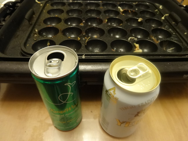 夜ごはんは、たこ焼きでした。ビールとワインとフルーツ酒を飲んで、食べ終わったときには、ふらふらになっていました。
