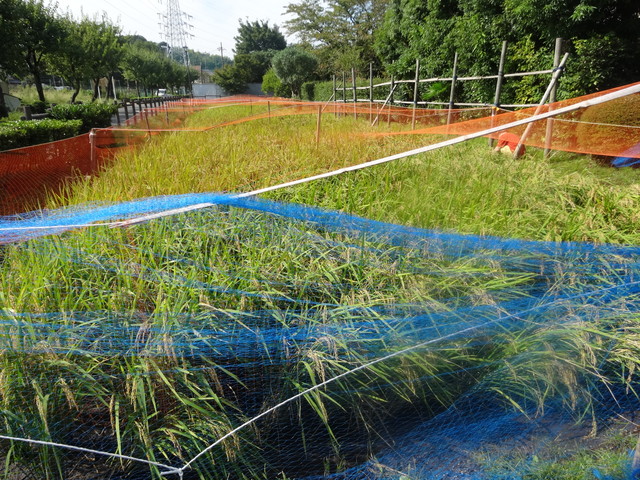 近所の田んぼは 強風で 見事にぐちゃぐちゃに倒れてたわwww