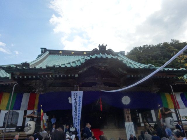 鎌倉 お出かけ 2015.10.14(水) 《へび》がお友達と鎌倉に行ってきました。まずは光明寺の十夜法要に行き、普段は入れない山門にも登りました。鎌倉の寺院の門では最大の格式だそうです。中には釈迦三尊や選りすぐりの16人の弟子の像が安置されています。それから銭洗い弁天に行き、お昼はしらす丼を食べ、鶴岡八幡宮に寄ってから帰宅しました。お土産は干物や鎌倉野菜を買って帰りました。