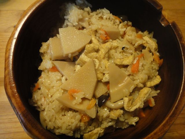 ご近所のお友達の実家でタケノコが沢山とれるらしく、おすそ分けしていただいたので、タケノコごはんにして食べました。《とり》がタケノコをずいぶん気に入って沢山食べていました。4人で3合を完食です。