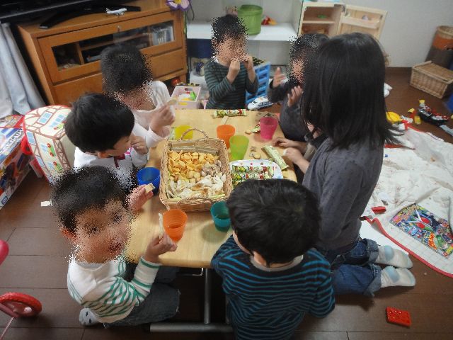 ママランチ 幼稚園 2010.05.14(金) 《いぬ》のクラスのママランチがありました。《へび》は役員なので司会&会計をしたそうです。それなりに盛り上がって楽しかったそうです。 ママランチが終わってからは近所のお友達が家に遊びに来てくれました。我が家も含めて4家族です。男の子も女の子もアイスクリーム屋さんごっこにハマっていました。