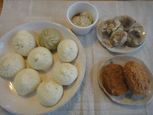 おにぎり 食べ物 2010.05.15(土) 夜ご飯はおにぎりパーティーをしました。お米はデパ地下でバイトをしているママがとても人気のあるおにぎり屋さんのものを3合分プレゼントしてくれました。具は、ツナマヨ、紀州の梅干し、塩こぶ、いくら、キムチです。とてもおいしかったです。 先週もお昼は中華街でテイクアウトしたのですが、今日も肉まん、シュウマイ、スープ餃子などを買ってしまいました。どれもおいしかったです。