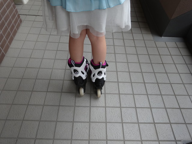 《いぬ》に頼まれてインラインスケートのブレーキを外しました。器用に後ろ向きに滑っていました。