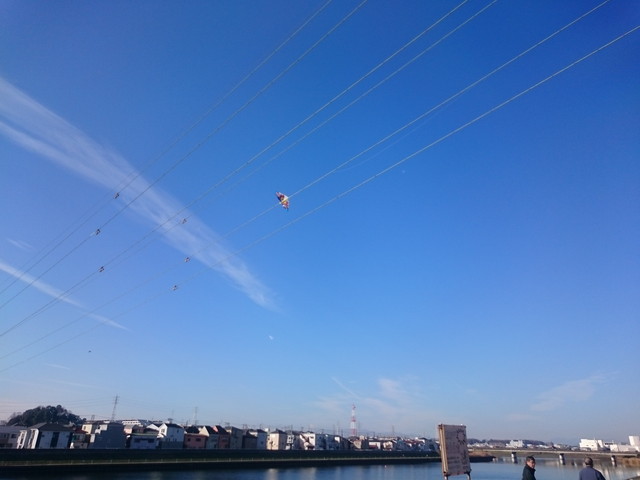 3が日最後に運動も兼ねて自転車で川崎大師に行ってきました。もう3日なのに、ものすごい人でした。途中で電線に引っかかっているカイトを見つけました。