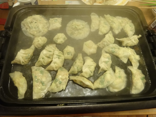 今夜は餃子パーティーです。《とり》と《いぬ》も餃子を包むのを手伝ってくれました。丸い餃子は二人が富士山と呼んでいました。
