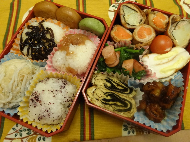 部長とのランチミーティングのお弁当です。4種類のおにぎりが入っています。
