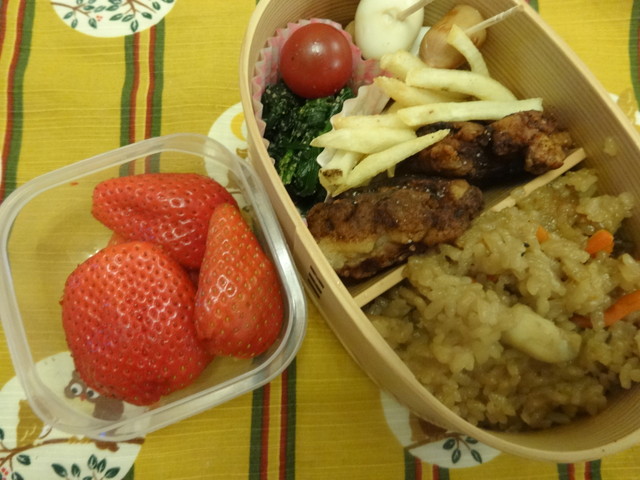《とり》が社会科見学に行くので、リクエスト通りにお弁当をつくりました。夜ご飯は《たつ》のリクエストでパエリアを作ってもらいました。