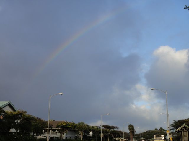 それからオアフ島を一周ぐるっと回ってワイケレプレミアムアウトレットに行きました。海沿いの道からは青い海が見えてとってもきれいでしたが、写真は撮り忘れました。《とり》と《いぬ》は疲れていたようで半分くらいは寝ていました。ワイケレプレミアムアウトレットでは、ちょうど夕立が上がったところで虹がきれいに見えていました。