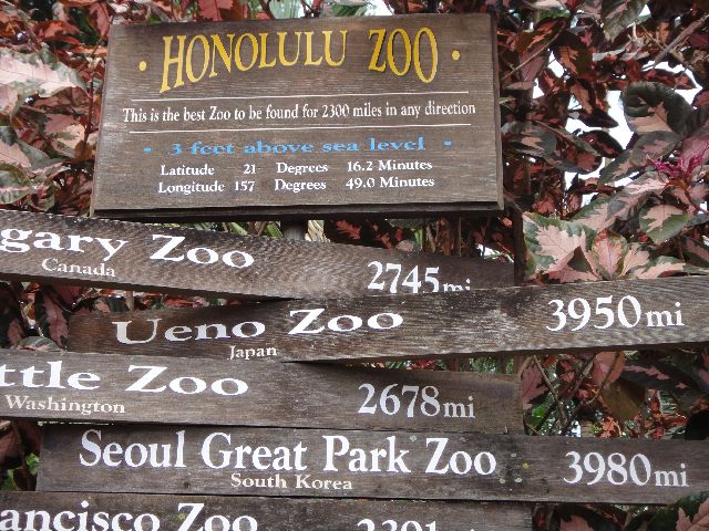 ハワイ旅行5日目です。今朝は8時頃までゆっくり寝て、ワイキキのスーパーマーケットでお弁当とおやつを買ってからホノルル動物園に行きました。動物園まではトロリーのバス停から歩いて10分くらいです。ホノルル動物園から上野動物園までは3950マイル離れているそうです。