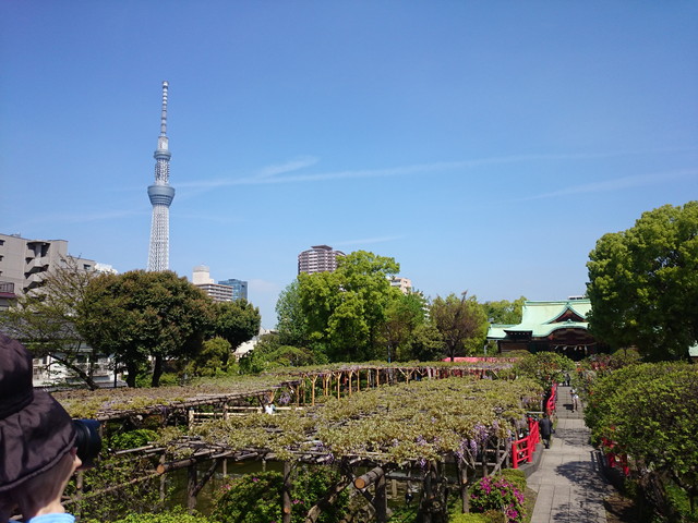観光 お出かけ 2016.04.22(金) 《へび》がお友達と亀戸天神に藤をみにいきました。きれいに咲いていて、スカイツリーもきれいに見えました。清澄庭園に移動して桜を見てからブルーボトルコーヒーで一休みしました。深川不動でお参りをしてから深川飯を食べて日本橋に寄ってから帰宅しました。有名な大福などをお土産で持って帰りました。