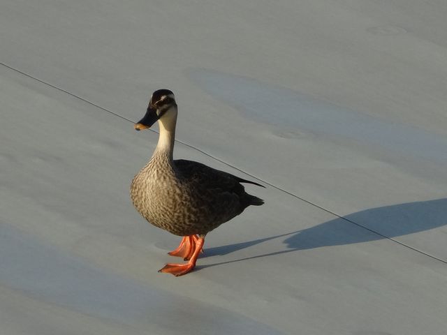 朝、ベランダから見える隣の建物の屋上に鴨が2羽いました。朝ごはんを食べている間にいなくなっていました。