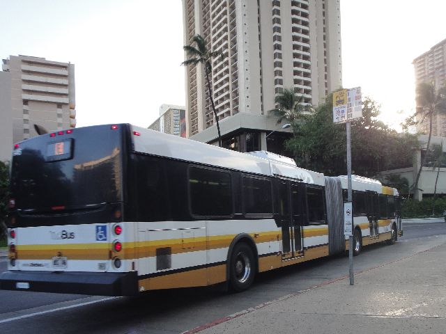 バス停と連節バスです。バス停には時刻表は掲示されておらず、どの系統のバスが通るのかだけが表示されていました。リムジンもよく見かけました。送迎とか観光で使われているようです。