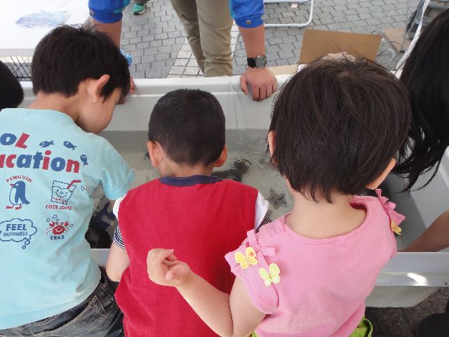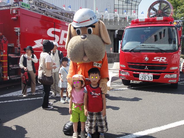 今日は開港記念日で横浜市の幼稚園や小学校はお休みです。せっかくなので《へび》が《とり》と《いぬ》を連れてみなとみらいの横浜開港祭に行ってきました。無料のイベントが沢山ありました。八景島シーパラダイスのコーナーではペンギンが間近で見れたり、水槽に手を入れて小さいヒトデやサメが触ることができ、《とり》も《いぬ》も手を入れて触っていました。他にも火災警報器を鳴らしたり消防車を見たりしていました。大声を出して点数を競うコーナーでは《とり》と《いぬ》の二人で103.6点を記録しました。エアークッションの滑り台コーナーは30分位並びましたがかなり楽しそうに滑っていました。そして二人は横浜の海を見て「茶色い!」と言っていました。。。