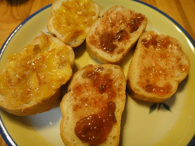 ジャム 食べ物 2010.06.03(木) 今日はスイミングの日でした。月曜日にハワイのお土産のお菓子を《とり》と《いぬ》に持たせたところ、《とり》のクラスでは火曜日に先生が配ってくださったようです。そのお礼にとクラスのママがラスクで有名なガトーフェスタハラダのジャムのセットを下さいました。とてもおいしかったです。
