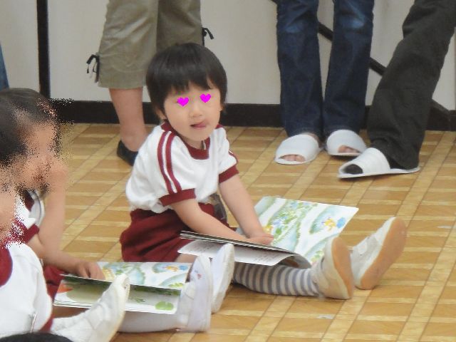 父親参観 幼稚園 2010.06.06(日) 《いぬ》と《とり》の幼稚園の参観日でした。1時間の授業が2回で途中に休憩が30分で結構しんどいです。はじめに《いぬ》の授業がありました。年少のクラスではまだ幼稚園に馴染んでいない子もいましたが、《いぬ》はそれなりに楽しんでいるようでした。次に《とり》の授業がありましたが、年少の授業を見たあとなので、みんなビシっとしていて頼もしく感じました。《とり》はグループに分かれてのお絵かきもみんなで楽しんでいました。