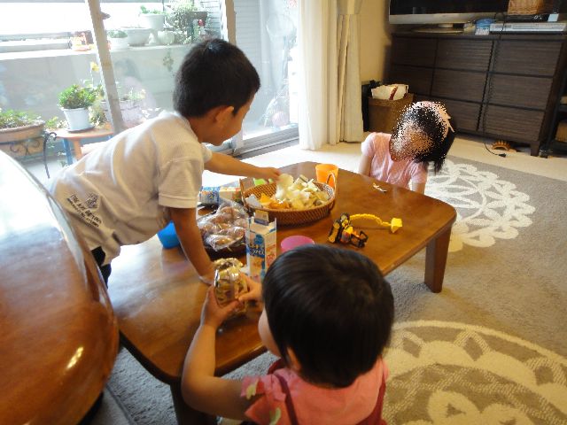 去年同じクラスだったお友達のお家に《へび》と《とり》と《いぬ》が遊びに行ってきました。《とり》は高速道路のおもちゃでずっと楽しそうに遊んでいました。《いぬ》はWiiのボーリングをお姉ちゃんに教えてもらったり、ドレスを貸してもらったりして楽しく遊んでいました。2時頃からお邪魔して、おやつを食べて夕方帰ろうとすると、お姉ちゃんが出前を取りたいと言い出して、一緒に夜ご飯を食べて帰ることになりました。パパが2週間ほどメキシコに出張なのでさみしいようです。子供たちの希望で夜ご飯はお寿司になりました。子供たちはにぎり、ママたちは特上ちらしです。とてもおいしかったそうです。《たつ》が帰ってくると、《へび》はしゃべりすぎたようで、声がほとんど出なくなっていました。