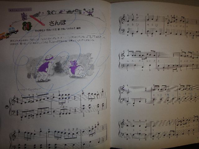 さんぽ 習い事 2010.06.15(火) 午後から《とり》のピアノ教室でした。トトロの主題歌「さんぽ」に3回目でやっと合格しました。16分音符や和音の3連符も出てくるのでかなり練習していました。 午前中、《へび》はスポーツクラブのプールで水中ウォーキングをしたり泳いだりしてきたそうです。暑いだけにうらやましいです。