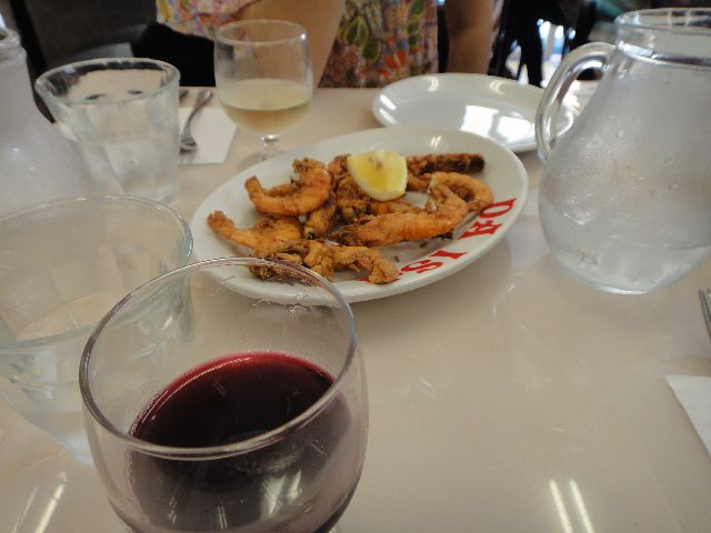 《へび》が幼稚園のママたち5人で中目黒にピザを食べに行っていました。世界ピッツア選手権チャンピオンが開いたナポリピッツァのお店「ピッツェリア エ トラットリア ダ イーサ」です。11時半開店で15分前に着くとすでに行列。。。お店には石ガマがあり、薪を入れて火を焚いてピザを焼いていました。エビとイワシのフリッター、ピザ3種類(アンチョビ、ハム、リコッタ)を頼んでワインで乾杯!会話も弾んで楽しいランチだったそうです。