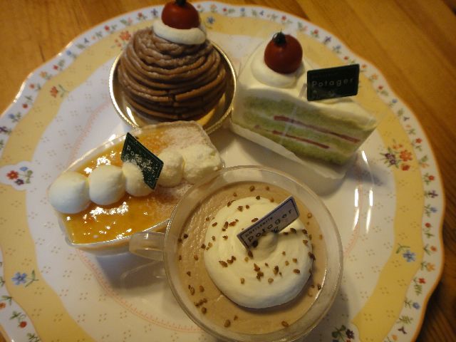 帰りにミニたいやきと野菜のケーキで有名な「パティスリー ポタジエ」でトマトのショート、モンブラン、マンゴーキャロットムース、そば茶のムースを買って帰ってきました。ピザのお店でもテイクアウトができるのに、《へび》が満腹でピザはもう食べたくないという理由で買ってもらえませんでした。《たつ》もピザを食べたかった。。。
