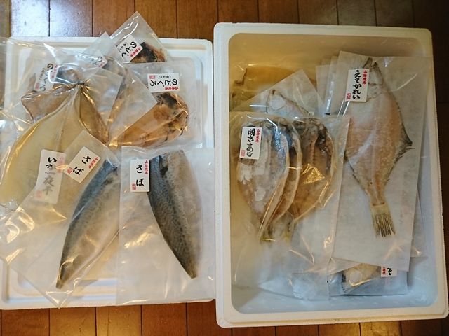 ふるさと納税の返礼で境港から干物をいただきました。《とり》がのどぐろを狙っていました。