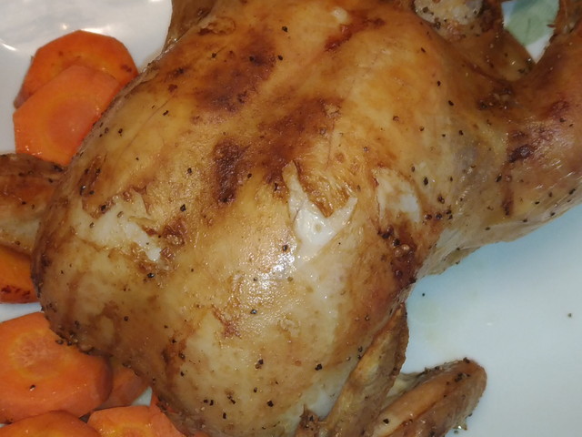 クリスマスなので、夜ご飯はローストチキンです。塩、コショウをして、オイルマッサージは《いぬ》がやってくれました。体に詰めたライスは、《とり》がほとんど食べていました。