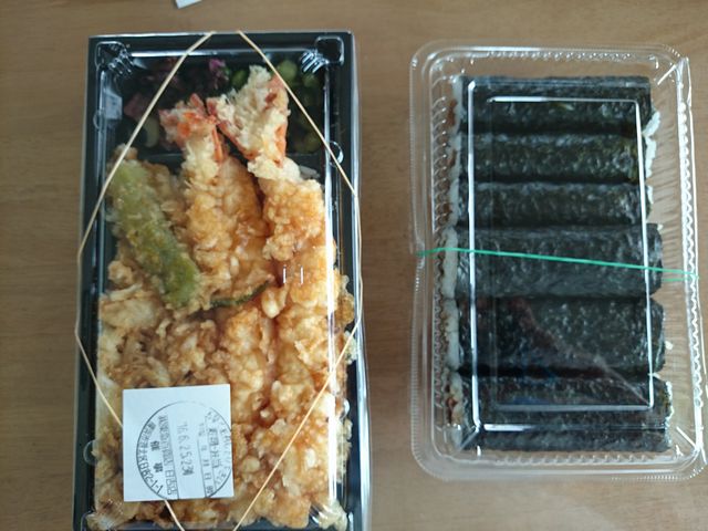 お昼に特別出店の天丼を買いに行ったついでに、こどもたちのおやつのかんぴょう巻きを買いました。沢山買ったのに《とり》が一人で全部食べてしまいました。