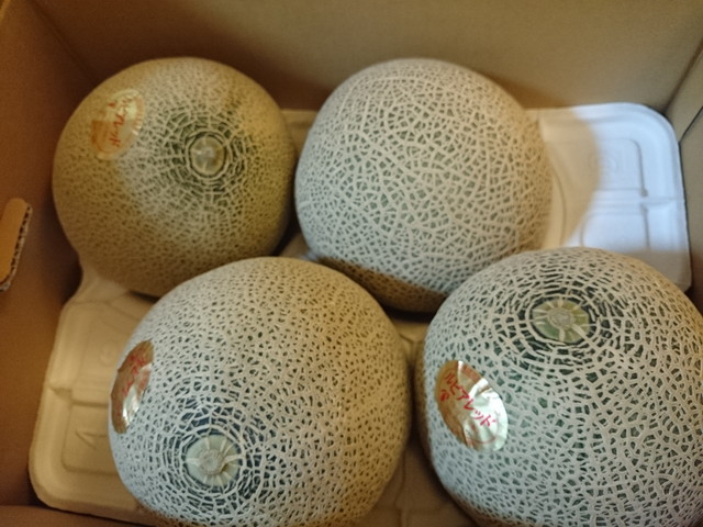 ふるさと納税のお礼のメロンが届きました。週末が食べごろです。