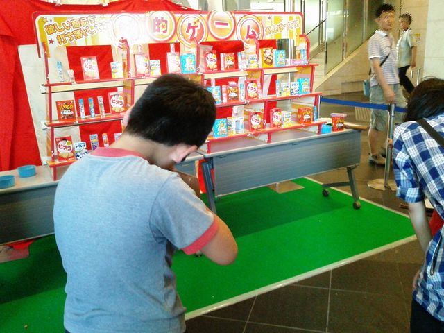 《とり》と縁日にいきました。射的でお菓子をゲットしていました。