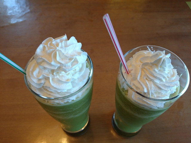 おやつに《いぬ》が抹茶のフラペチーノを《へび》に手伝って教えてもらいながら、作ってくれました。おいしかったです。
