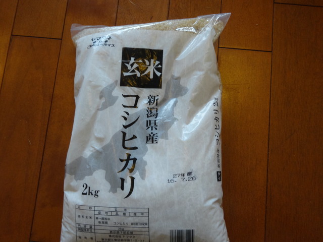 玄米 お買い物 2016.08.12(金) 《いぬ》にお米を二キロ頼んだら玄米を買ってきました。途中で電話があり、『お米って茶色いよね?』と聞かれ、白いやつを買ってくるように伝えましたが精算したあとだったようです。精米をしておいしくいただきました。