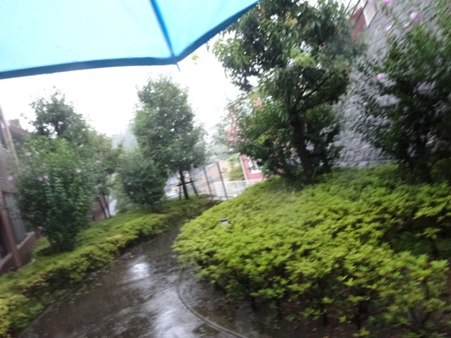 台風で雨がすごかったです。子供たちが長靴を履いて、写真を撮りに行っていました。