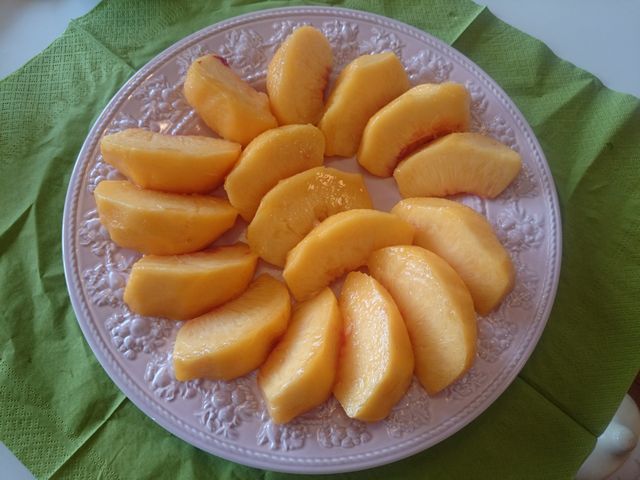 先週届いた黄金桃も残り数個です。大皿にきれいに盛り付けてみました。とても甘くて美味しいです。