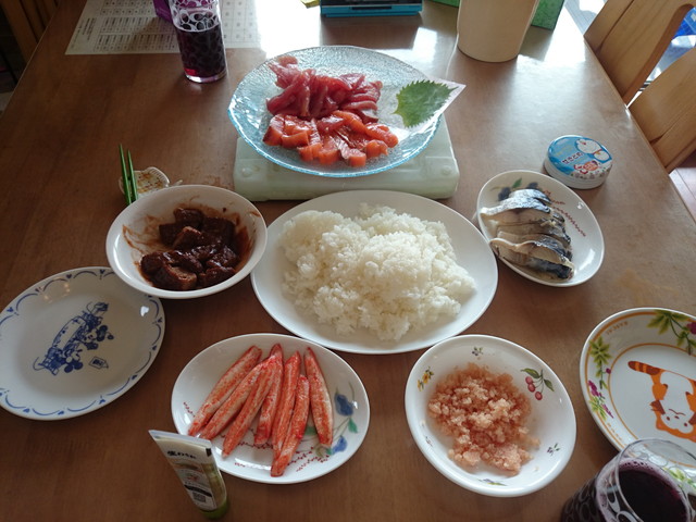 お昼ご飯は、おにぎりパーティーです。豪華でうらやましいです。