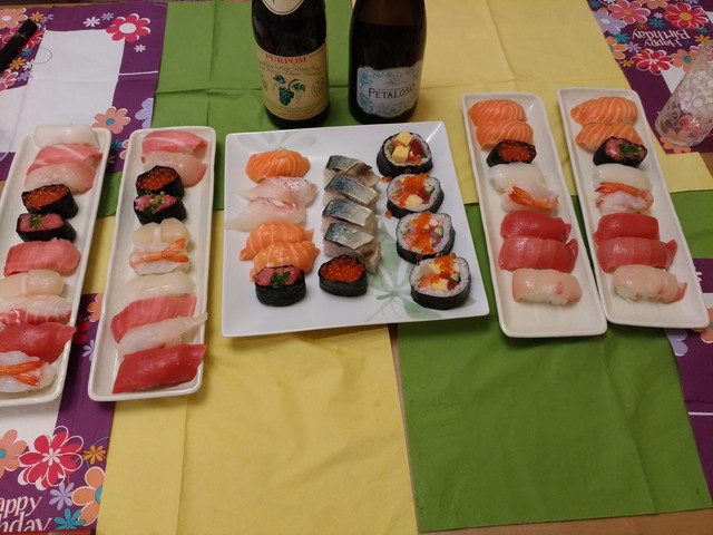 《へび》の誕生日のお祝いをしました。夜はお寿司とゆら鯛塩釜でお祝いをしました。
