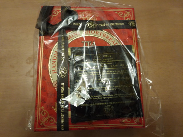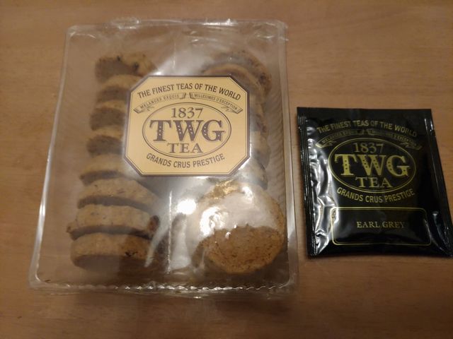 シンガポールのお土産の紅茶とクッキーのセットをいただきました。マリーナベイサンズに泊まったそうです。