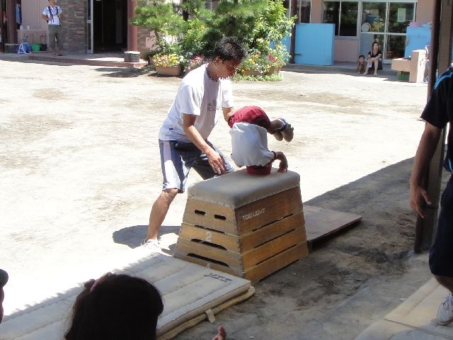 月曜日なので《とり》の体操教室がありました。普段は幼稚園が終わった午後ですが、今日は祝日なので午前中です。《とり》に自分の自転車を漕がせて幼稚園まで一緒に行ってきました。補助輪を取ってから初めての外出です。自転車はスピードは出ませんが、幼稚園までならけっこう歩道が広いので自分の自転車で行かせても大丈夫をそうです。体操教室では前回り、後回り、跳び箱、鉄棒などをしていました。