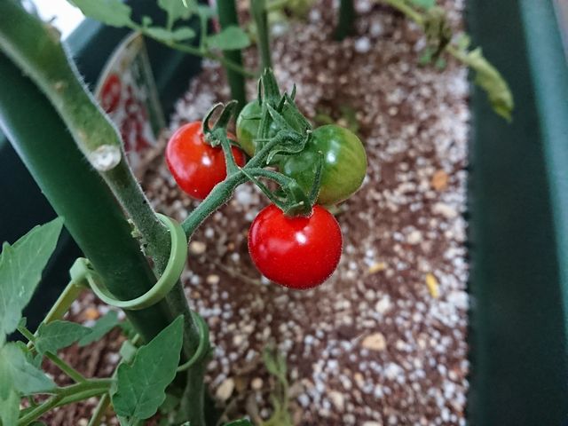 ベランダで育てているミニトマトです。ようやく食べれる状態になりました。しっかりトマトの味がしておいしかったです。