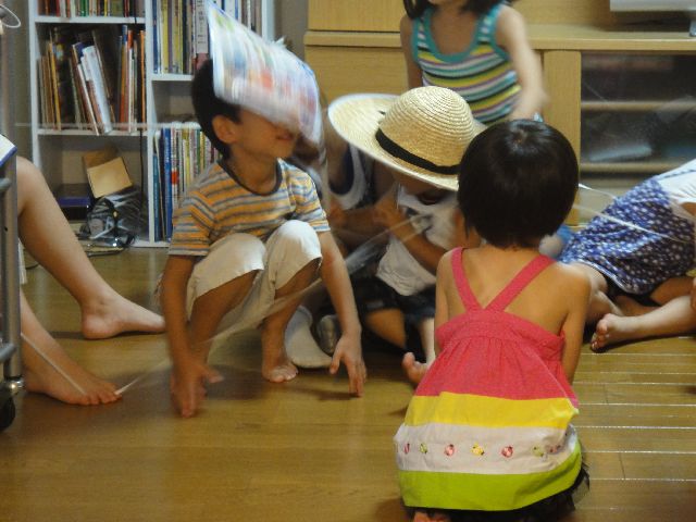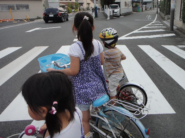 ラボ・パーティ お友達 2010.07.23(金) 先日参加したラボ・パーティの体験にもう一度行ってきました。前回と同様に英語の童話を聞かせてもらってから歌をうたったり、一緒に英語でゲームをしたりして楽しんでいました。 帰りはみんなで一緒に帰ってきました。《とり》も補助なしの自転車で一緒ですが、まだちょっとふらふらしていました。