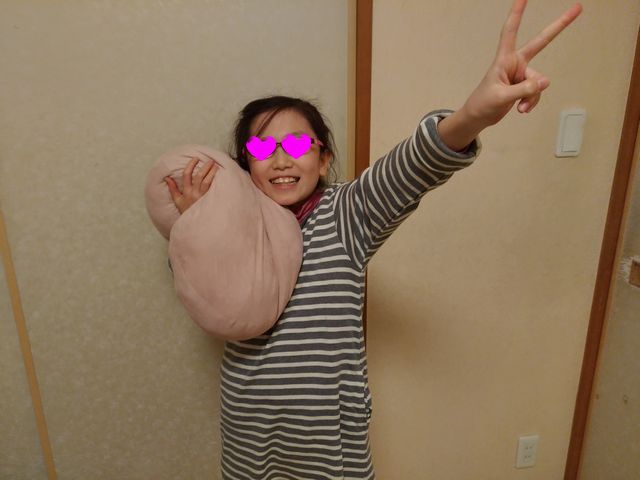 《いぬ》がお年玉でふわふわのクッションを買いました。家の中でいつも持ち歩いています。
