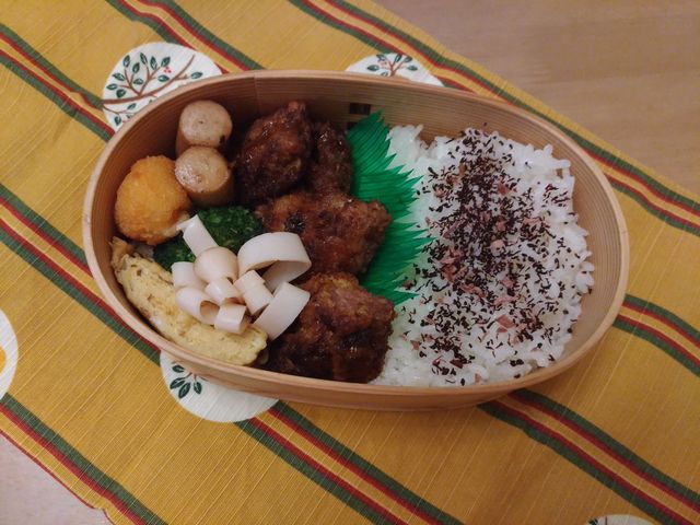 ランチミーティングのお弁当です。気のせいかもしれませんが、昨日の夜ごはんと同じに見えます。