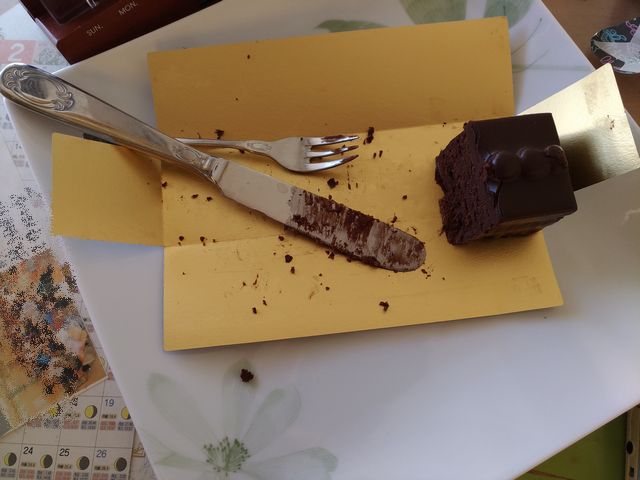 バレンタインということで、《へび》と《いぬ》からチョコレートケーキをもらいました。会社から帰って食べようとしたら、ほとんど残っていませんでした。