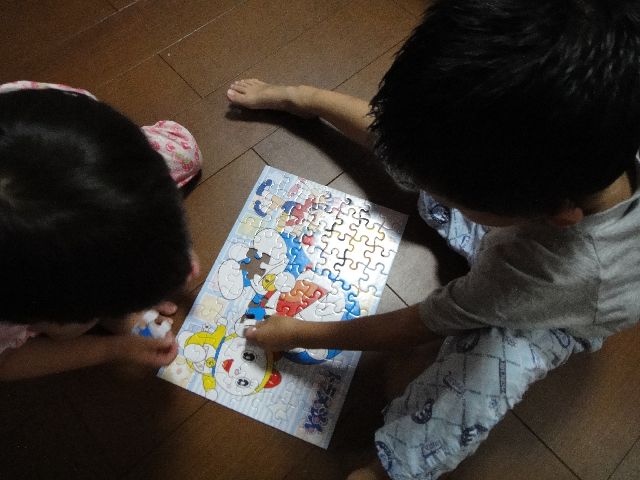 豪雨 子育て 2010.07.29(木) 昨日までの猛暑から一転して、今日は朝から豪雨でした。外出するのも一苦労でした。《とり》は《へび》のお母さんがくれた70ピースのパズルをしていましたが、かなり余裕です。 食後に《へび》のお父さんが買ってくれたわらびもちを頂きました。とてもおいしかったです。