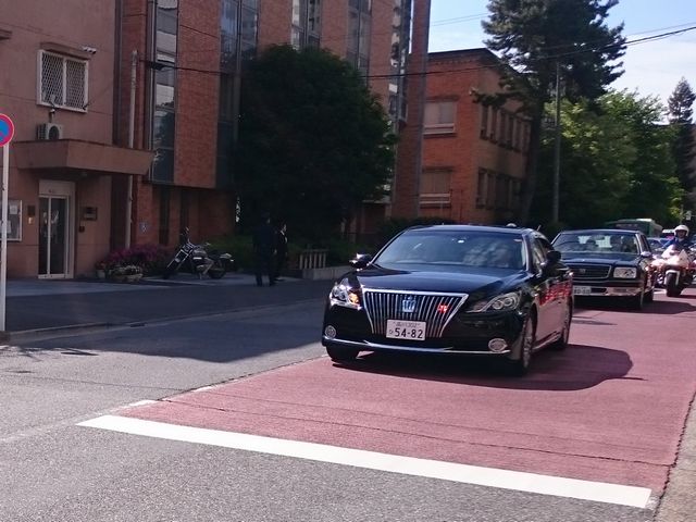 天皇皇后両陛下 その他 2017.05.06(土) 《とり》と《たつ》が東京都立図書館に向かっていると、警官がいっぱいいたので何事かと思ったら、天皇皇后両陛下が通られました。たくさんの人が写真を撮っていました。
