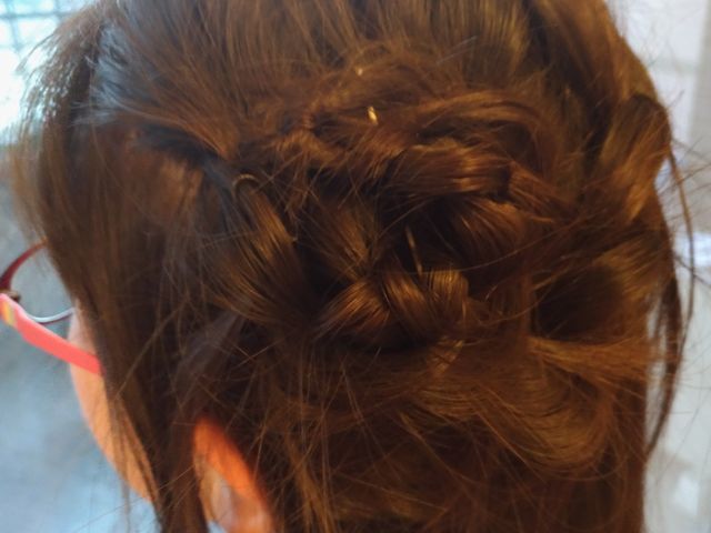 《いぬ》が美容院で髪を切ってもらいました。かわいく結ってもらった髪も気に入っていました。