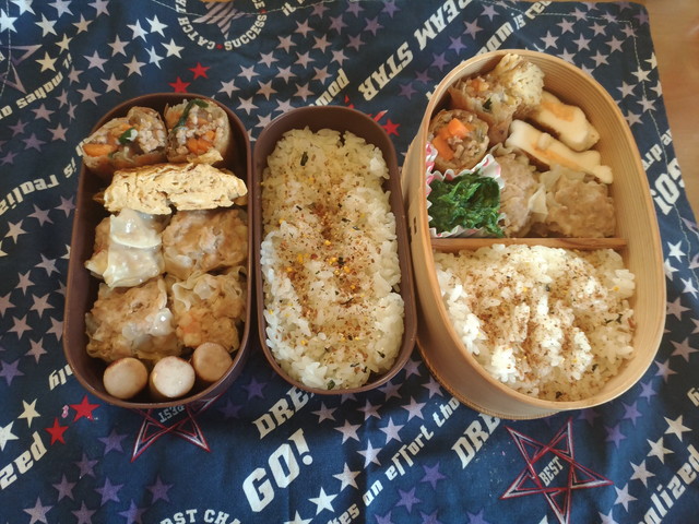 右端がランチミーティングのお弁当です。《とり》のお弁当と同じおかずですが、《とり》のお弁当の方がおかずがたくさん入っています。