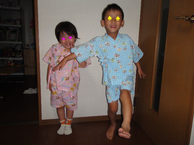 花火の祭典 お出かけ 2010.08.15(日) 大田区の花火の祭典を見に行ってきました。《とり》も《いぬ》も甚平を着て準備万端です。朝から《たつ》が場所取りに行ったので、河川敷の最前列で見やすい場所から観覧です。《とり》はとっても真剣に花火を見ていましたが、《いぬ》はよそ見をしている時間が多かったです。ちょうど打ち上げ地点の真向かいだったので迫力のある花火を楽しめました。